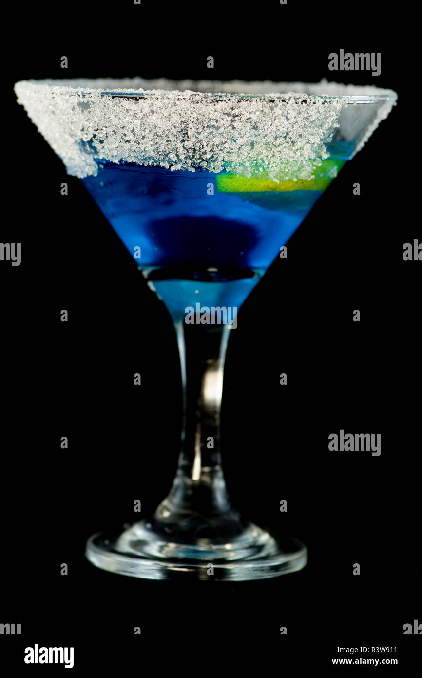 Blue Kamikaze Cocktail With Vodka Lime Juice Blue Curacao Sugar And Lime Wedge Stock Photo Alamy